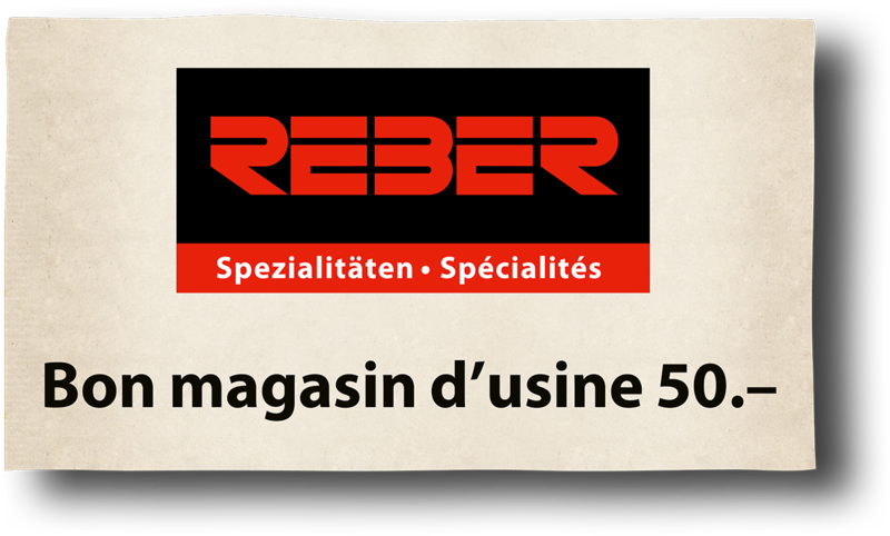 5 x Bon d'achat pour le magasin d'usine Reber d'une valeur de 50.-